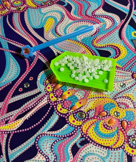 I mean FFS I have found jewels stuck to my arse cheeks AND in my commode. But now I have to finish it, I can’t leave it not complete. Then I am going to take it to the carboot and we can see if we sell it for £1 or something as its way too pink for my home LOL.